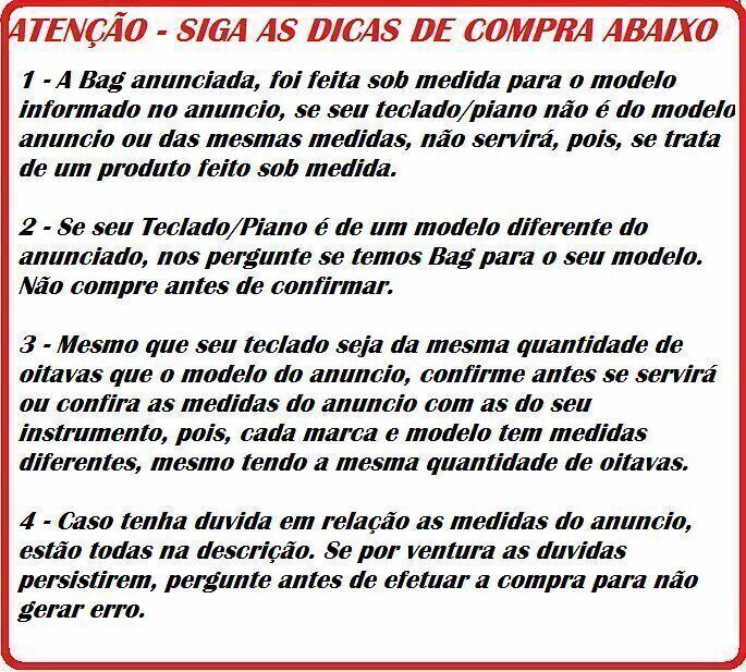 4. Resistência Confiável: Construída para durar, nossa capa é resistente e projetada para suportar o desgaste diário, mantendo seu teclado ou piano digital em condições impecáveis.